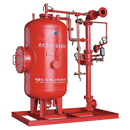 閉式泡沫-水噴淋裝置主要由泡沫液儲罐、膠囊、閉式噴頭、泡沫比例混合器、濕式報警閥、泡沫液控制閥、壓力泄放閥和管件等組成。能夠?qū)崿F(xiàn)在報警閥動作時,聯(lián)動壓力泄放閥及泡沫液控制閥,使壓力水和泡沫液由比例混合器按設(shè)計比例混合,泡沫噴頭噴出空氣泡沫實現(xiàn)撲救初期火災(zāi)。閉式泡沫-水噴淋裝置廣泛用于地下停車場、汽車庫、油泵房、石油化工廠等場所。
